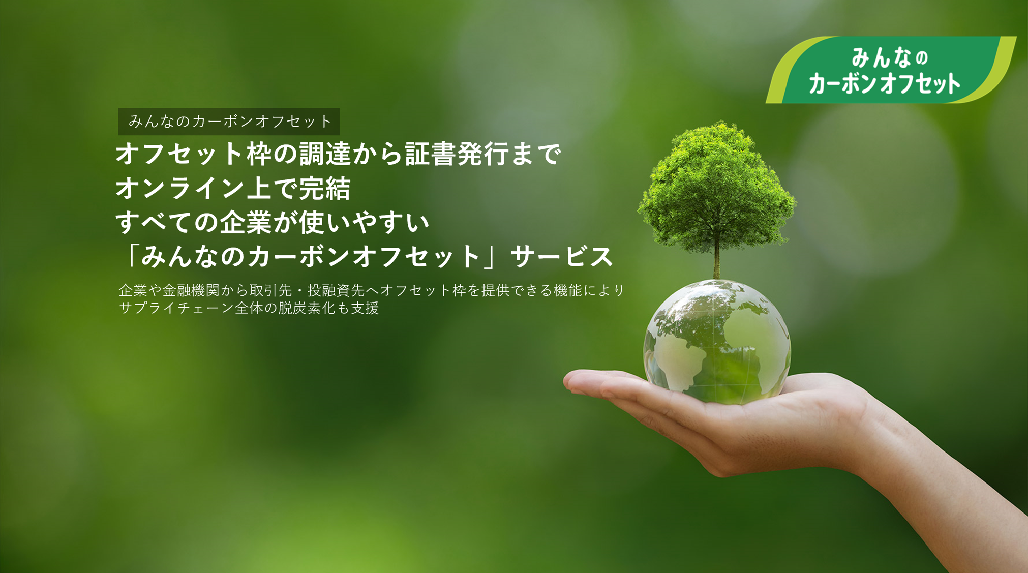 みんなのカーボンオフセットは、企業におけるカーボン・オフセットを手軽に始められるWeb型のSaaS(Software as a Service;ソフトウェアをインターネット経由でサービスとして利用する仕組み)です。カーボン・オフセットとは、日常生活や事業活動で排出されるCO2などの温室効果ガス(GHG)を、他の場所での排出削減・吸収量で埋め合わせる仕組みです。